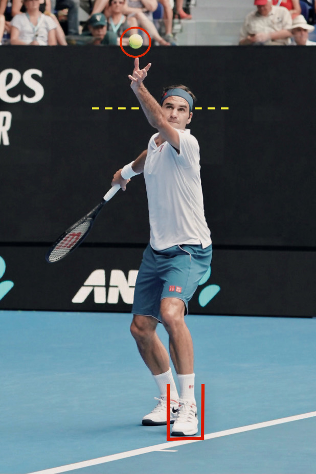 左足を固定して、目より上でトスアップすると安定しやすい (写真:R.フェデラー[スイス])