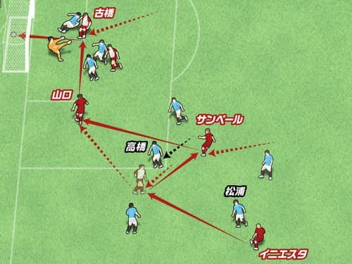 高橋の寄せのタイミングが早ければ、山口の選択肢はまた違っていたかもしれない。あるいは、イニエスタのパスの選択も変わっていた可能性もある。
