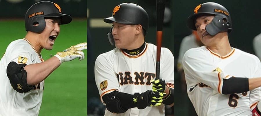 巨人・梶谷隆幸、丸佳浩、坂本勇人(左から)【写真:荒川祐史】