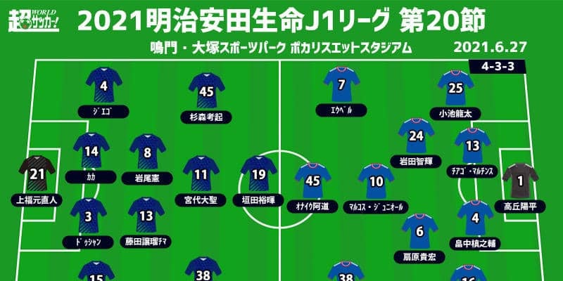 【明治安田生命J1リーグ第20節】 2021年6月27日(日) 18:00キックオフ 徳島ヴォルティス(14位/19pt…