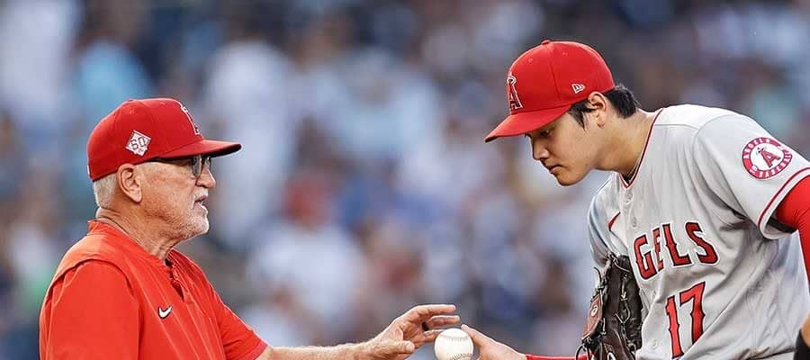 ヤンキース戦に先発するも、初回で降板するエンゼルスの大谷翔平とマドン監督【写真:AP】