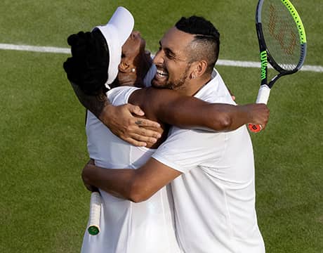 テニスのウィンブルドン(イギリス/ロンドン、芝、グランドスラム)は2日、ミックスダブルス1回戦が行われ、N・キリオス(オーストラリア)/ V・ウィリアムズ(アメリカ)組がA・クライチェック(アメリカ)/ S・サンタマリア(アメリカ)組を6-3, 3-6, 7-5のフルセットで破り、初戦を突破した。