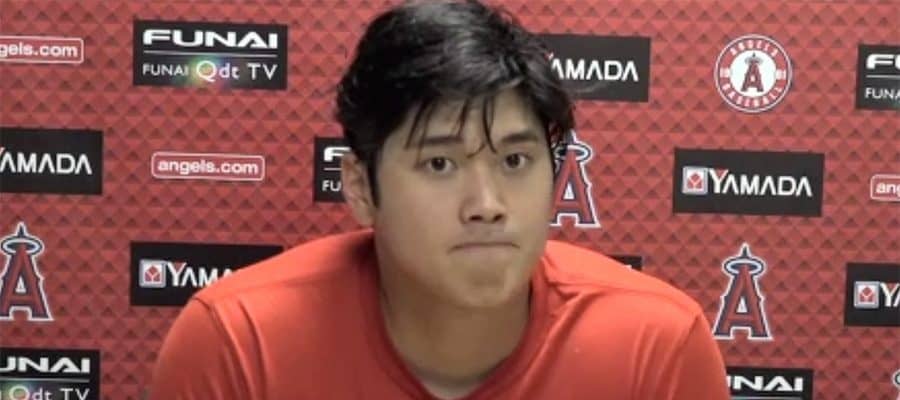 会見に臨んだエンゼルス・大谷翔平(画像はスクリーンショット)