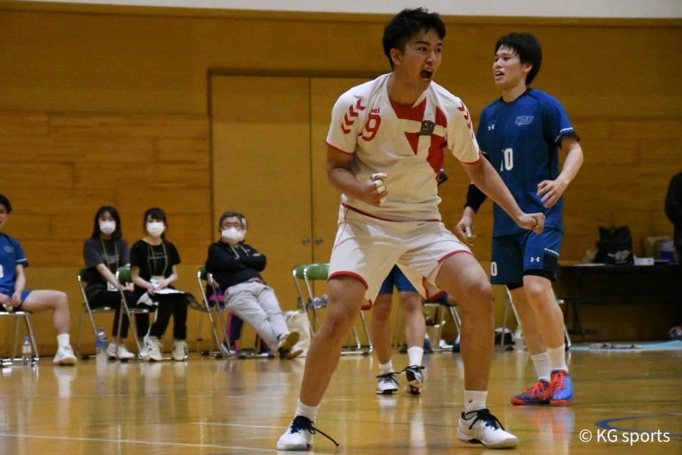 試合開始直後に林田(国4)が決めると勢いに乗り、リードを保った関学。しかし、中盤に追いつかれるとそこからは流れをつかめず。7−13で試合を折り返した。続く後半では持ち直し、辻本(経1)を中心に得点。試合時間残り約10分には1点差まで追いついた。そこから点の取り合いが続き逆転の可能性が見えるも、相手も譲らない。残り数分で連続得点を許すと、終了の笛とともにだめ押しの1点を決められ21−25。惜しい敗北となった。