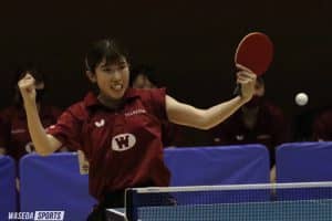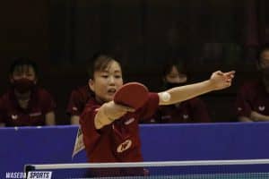 大会3日目で準々決勝までを終え、2大会ぶりの頂点が見えてきた。最終日の第1戦は、これまで破竹の勢いで勝ち進んでいる専大との準決勝。Tリーグで活躍した木村香純や全日本ジュニア女王の出澤杏佳を擁する優勝候補筆頭のチームに対して、早大女子部はどのような戦いを見せるか。最終日も、目が離せない。