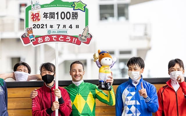 4日の函館11R・巴賞(OP)でサトノエルドール(牡5、美浦・国枝栄厩舎)が1着となり、鞍上のC.ルメール騎手(栗東・フリー)は、7年連続7回目のJRA年間100勝を達成した。