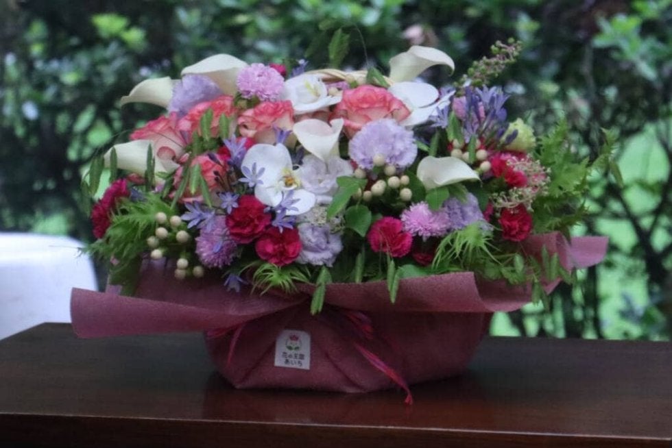 また、大村知事から宮下騎手の勝負服色である紫と桃色をモチーフにした、愛知県産の花の贈呈を受けた。