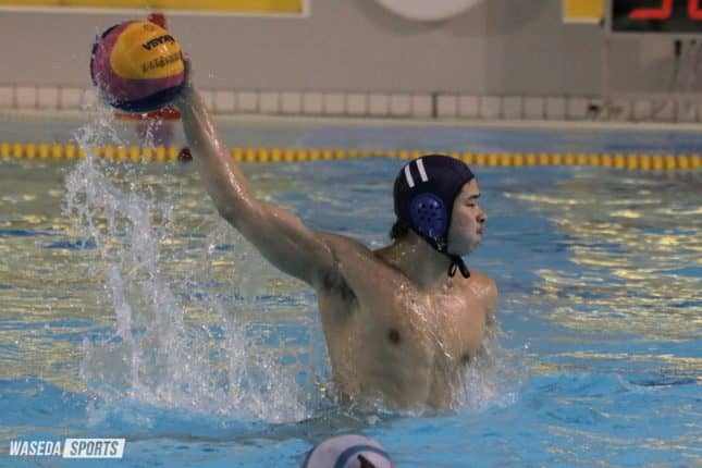 関東学生リーグ戦(リーグ戦)が、2年ぶりに帰ってきた。新型コロナウイルス感染拡大防止のため、例年の総当たり戦ではなく2グループ制のリーグ形式で行われることとなった。早大と同グループに入ったのは、筑波大、中大、慶大の3チーム。早大はここまで2試合を戦い、中大に12-7で勝利し、慶大には9-9で引き分けた。そして迎えたこの日、上位リーグ進出を懸けて筑波大との一戦に臨んだ。試合は早大が曵地孝太郎(スポ1=埼玉・秀明英光)のゴールで先制するも、第1ピリオド(P)中に逆転を許す苦しい展開に。その後は強豪相手に一進一退の攻防を見せたが追いつくことはかなわず、7-10で悔しい敗戦となった。