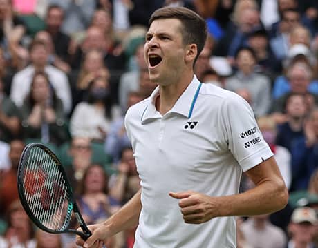 テニスのウィンブルドン(イギリス/ロンドン、芝、グランドスラム)は6日、男子シングルス4回戦が行われ、第14シードのH…