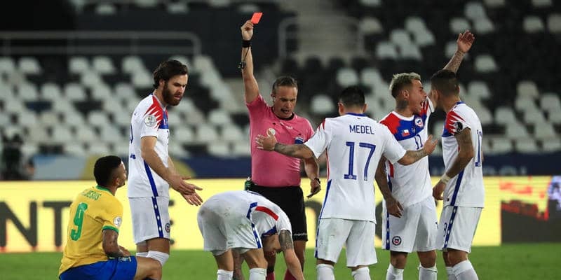 ジェズスは2日に行われたコパ・アメリカ2021準決勝のチリ代表戦(1-0で勝利)に先発出場。しかし、後半立ち上がりの48分にハイボールを処理しようとした相手DFエウゲニオ・メナに対し、足裏を見せたタックルを見舞ってしまう。顔面付近に飛び蹴りが入る形となり、主審は即刻退場を命じていた。