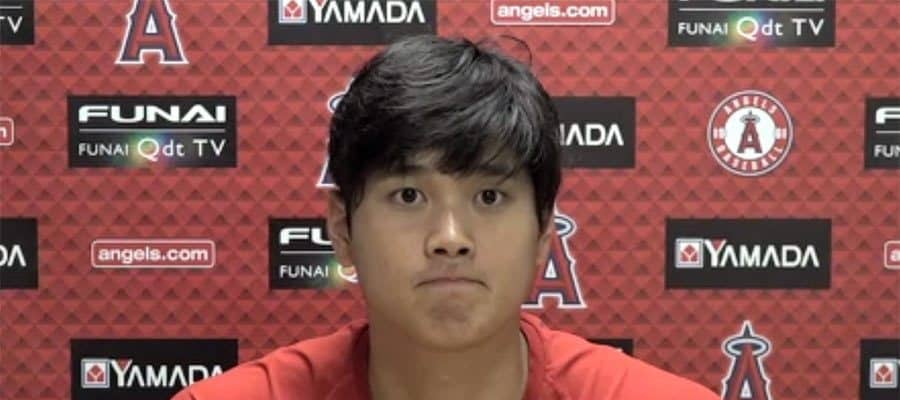 試合後の会見に臨んだエンゼルスの大谷翔平(画像はスクリーンショット)