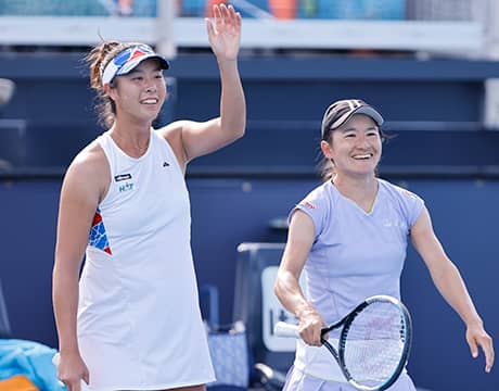 テニスのウィンブルドン(イギリス/ロンドン、芝、グランドスラム)は7日、女子ダブルス準々決勝が行われ、第5シードの青山…