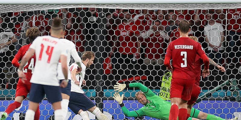 勝敗を大きく左右する重要な場面だったが、その瞬間にシュマイケルの顔にレーザーポインターが向けられ、緑色の光がちらついた。スローで確認するとシュマイケルの右目にも光が当たっていたように見えたが、圧巻の集中力を見せたデンマーク守護神は全く気にすることなく、ケインのPKを横っ飛びでストップ。だが、ルーズボールをねじ込まれてしまっていた。