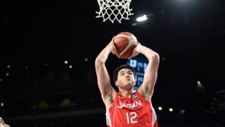 Yuta Watanabe rises for a dunk (©JBA)Co-captains Tanaka, Wat…