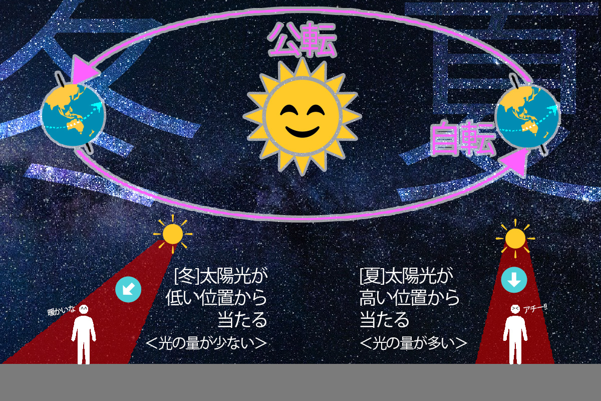 夏は暑くて冬は寒い。これは地球の常識である。それでは<なぜ暑いのか? なぜ寒いのか?>については、ご存知だろうか。それは「太陽の高さ」が関係している。1年間をかけて、太陽の周りを公転している地球は、北極と南極を結ぶ線(地軸)を軸に、コマのように1日1回転くるくると自転している。この地軸が太陽に対して斜めになっているため、1年間の中で太陽の高さが変わってくるのだ。