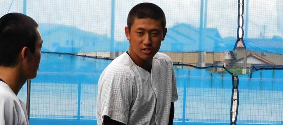 ナインが快音を響かせる中、打球速度の頭抜けた左打者がいる。プロも注目する阪口楽だ。身長187センチ、体重88キロ。恵まれた体格から鋭い打球を飛ばす。特徴はクセのない柔らかい打撃フォーム。そして、すり足での踏み込みと大きなフォロースルーが大谷翔平に重なる。打ち方が似ていると言われることもあるが「レベルが違いすぎて、参考にできないです」と控えめだ。