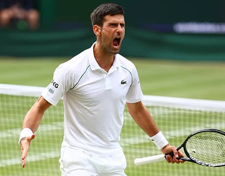 テニスのウィンブルドン(イギリス/ロンドン、芝、グランドスラム)は9日、男子シングルス準決勝が行われ、第1シードのN・ジョコビッチ(セルビア)が第10シードのD・シャポバロフ(カナダ)を7-6 (7-3), 7-5, 7-5のストレートで破り、7度目の決勝進出を果たし、R・フェデラー(スイス)とR・ナダル(スペイン)が記録する四大大会歴代最多タイとなる20度目の優勝に王手をかけた。会見では「20度目の優勝は全てを意味する。だからこそ僕はここにいるし、プレーしている」と語った。