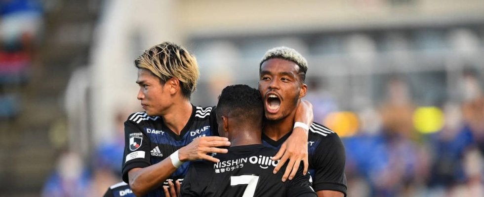 横浜F・マリノスの日本代表FWオナイウ阿道が見事なヘディングシュートを叩き込んだ。