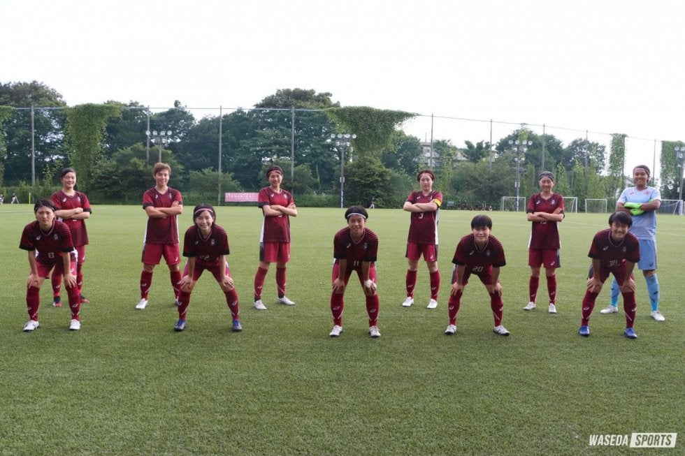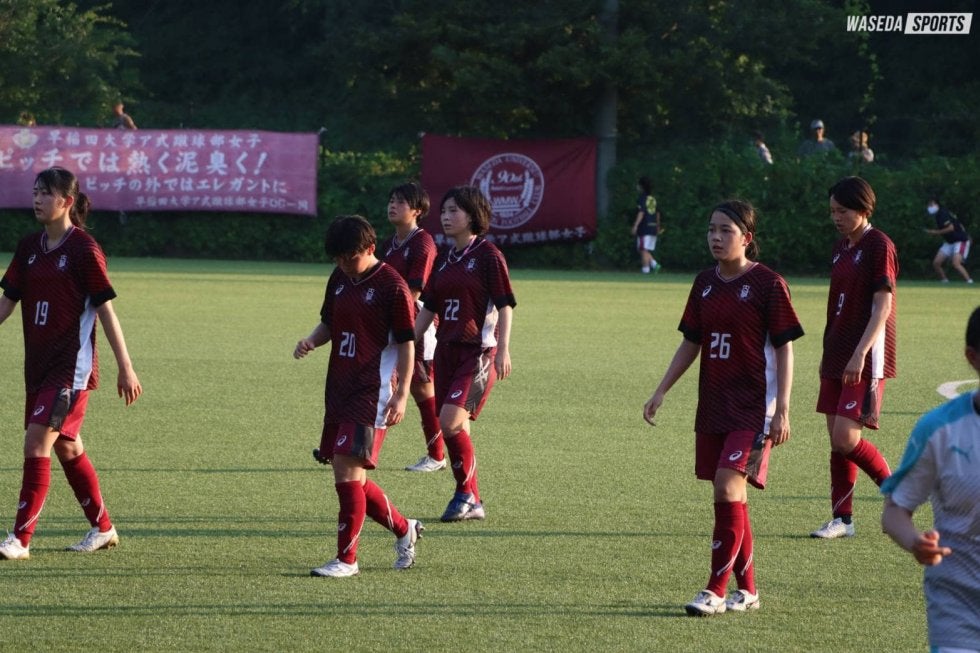 「関カレ(関東女子女子リーグ)で引き分けが続いていた(△0-0帝京平成大、△0-0東洋大)中で、その流れを断ち切れなかったのはすごく悔しい」。DF加藤希主将(スポ4=アンジュヴィオレ広島)は言葉を絞り出した。今季参戦する関カレ、関東女子リーグ(関東リーグ)ともに首位のア式蹴球部女子(ア女)は、これまで引き分けを挟んで無敗を継続。勢いそのままに勝利したいところだったが先制点を献上し、後半も追加点を許してしまう。MF築地育(スポ1=静岡・常葉大橘)の得点で反撃を試みるも、相手の堅守を崩しきれない。昨季関カレ女王の本領を発揮できず、1-2で今シーズン初の黒星を喫した。