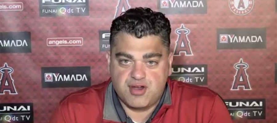 会見に臨んだエンゼルスのペリー・ミナシアンGM(画像はスクリーンショット)