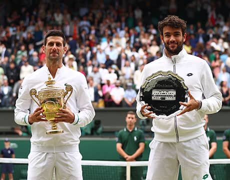 決勝戦、ベレッティーニは序盤ミスを重ねてゲームカウント1-5と追い込まれるも、そこから息を吹き返してタイブレークの末に第1セットを先取。その後、ジョコビッチに主導権を握られたベレッティーニは試合を通して16本のサービスエースを放つも、最後はバックハンドのスライスがネットにかかり3時間24分で力尽きた。