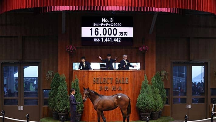 12日、苫小牧・ノーザンホースパークで行われている日本最大のサラブレッド市場「セレクトセール2021」1歳馬セールにて、上場番号3番・ホットチャチャの2020(牝)が3億円で落札された。