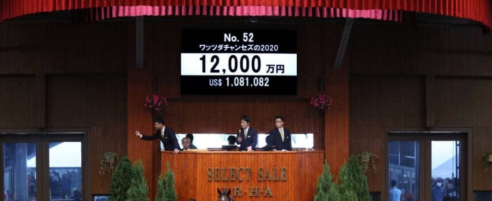 12日、北海道苫小牧にあるノーザンホースパークで、日本最大のサラブレッド市場「セレクトセール2021」が開催。1歳馬セールにて上場番号52番・ワッツダチャンセズの2020(牝)が1億2000万円で落札された。
