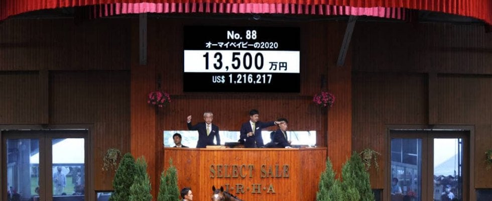 12日、北海道苫小牧にあるノーザンホースパークで、日本最大のサラブレッド市場「セレクトセール2021」が開催。1歳馬セールにて上場番号88番・オーマイベイビーの2020(牡)が1億3500万円で落札された。