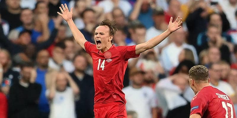 デンマーク代表のエースであるMFクリスティアン・エリクセンの心肺停止のアクシデントによる戦線離脱を受け、第2節のベルギー代表戦で大会初出場を飾ると、グループ最終節のロシア代表戦ではチームを今大会初勝利に導く鮮烈なミドルシュートを突き刺し、初ゴールを記録。その後、瞬く間に頭角を現わした21歳のアタッカーは、準決勝のイングランド代表戦でエリクセンを彷彿とさせる圧巻の直接FKを決め、ファイナリストをあと一歩のところまで追い込んでいた。