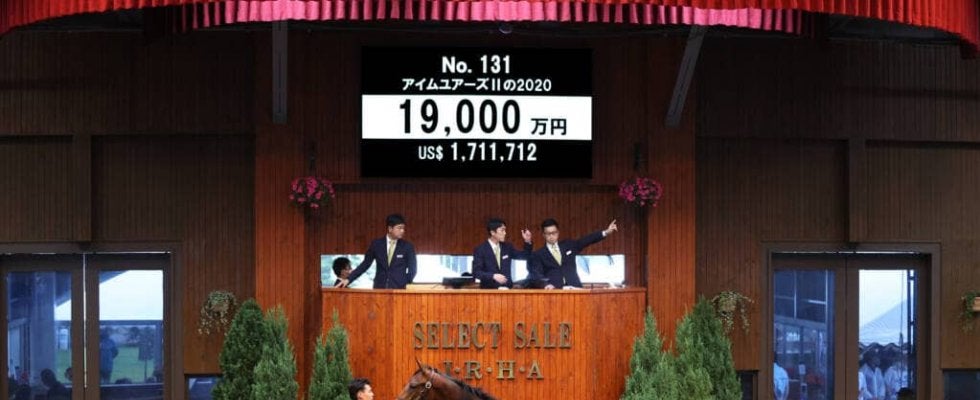 12日、北海道苫小牧にあるノーザンホースパークで、日本最大のサラブレッド市場「セレクトセール2021」が開催。1歳馬セールにて上場番号131番・アイムユアーズIIの2020(牡)が1億9000万円で落札された。