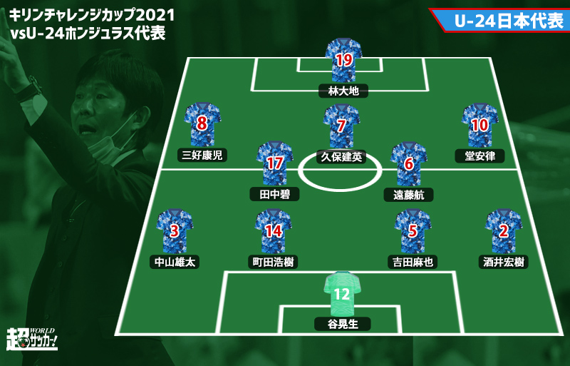 12日、キリンチャレンジカップ2021のU-24日本代表vsU-24ホンジュラス代表の一戦がヨドコウ桜スタジアムで行われ、3-1で日本が勝利した。