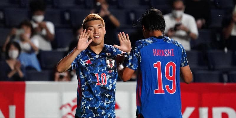 1カ月ぶりの実戦となる日本はACLの日程の関係で三笘や旗手といった一部戦力が不在の中、スタメンはGK谷、ディフェンスラインは右から酒井、吉田、冨安、中山が並び、中盤は遠藤と田中のダブルボランチに、堂安、久保、三好が前から2列目。そして最前線に林が配置される[4-2-3-1]の布陣となった。