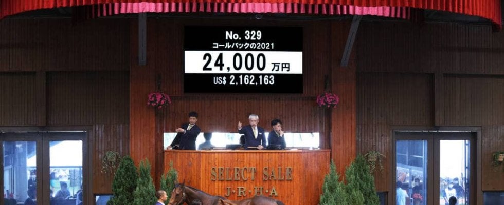 13日、北海道苫小牧にあるノーザンホースパークで、日本最大のサラブレッド市場「セレクトセール2021」2日目が開催。当歳馬セールにて上場番号329番・コールバックの2021(牡)が2億4000万円で落札された。