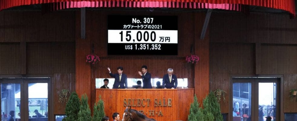 13日、北海道苫小牧にあるノーザンホースパークで、日本最大のサラブレッド市場「セレクトセール2021」2日目が開催。当歳馬セールにて上場番号307番・カヴァートラヴの2021(牝)が1億5000万円で落札された。