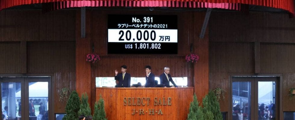13日、北海道苫小牧にあるノーザンホースパークで、日本最大のサラブレッド市場「セレクトセール2021」2日目が開催。当歳馬セールにて上場番号391番・ラブリーベルナデットの2021(牡)が2億円で落札された。