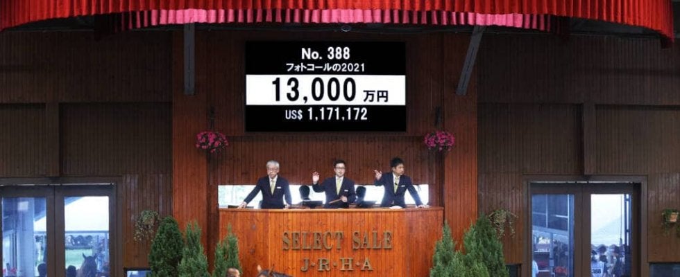 13日、北海道苫小牧にあるノーザンホースパークで、日本最大のサラブレッド市場「セレクトセール2021」2日目が開催。当歳馬セールにて上場番号388番・フォトコールの2021(牡)が1億3000万円で落札された。