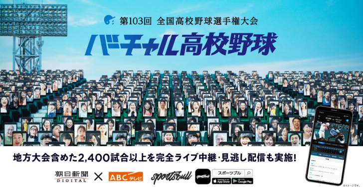 株式会社朝日新聞社(代表取締役社長:中村史郎)と、朝日放送テレビ株式会社(代表取締役社長:山本晋也)は7月12日(月)プロジェクト発表会を行い、株式会社運動通信社(代表取締役社長:黒飛功二朗)が運営するスポーツメディア「SPORTS BULL(スポーツブル)」内で展開する「バーチャル高校野球」(https://vk.sportsbull.jp/koshien/)で、全国高校野球選手権大会の地方大会全試合中継を目指した新たなプロジェクトを始動すると宣言しました。また、バーチャル高校野球の新機能「マルチビュー」「見逃し配信」「スーパープレイ動画」の搭載も発表しました。