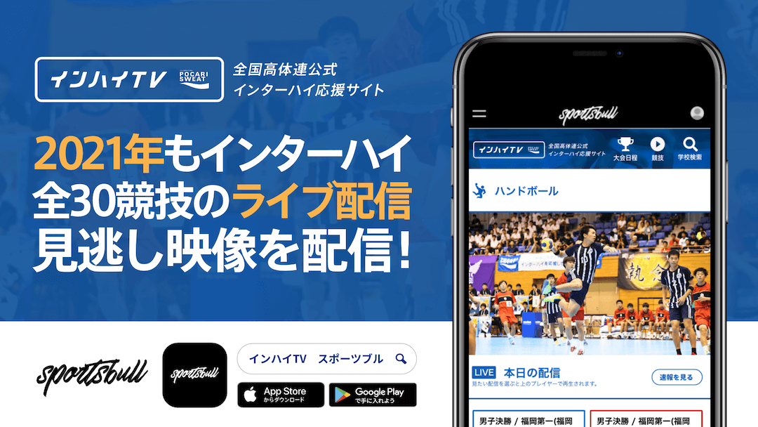 【NEWS RELEASE】2021年も「SPORTS BULL(スポーツブル)」と「インハイ.tv」が連携し、インターハイ夏季大会の全競技ライブ中継を実施 | インターハイ(インハイ.tv)