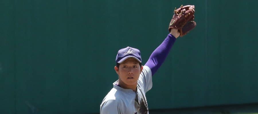 花巻東の背番号「1」を背負う“二刀流”にとって、偉大な先輩・大谷翔平投手の存在は大きい。「世界で活躍する姿を見るのは自分たちにとっても励みになる。自分は大谷さんのような活躍はできないですけど、負けないようなプレーをしていきたい」。負けたら終わる夏。「最後は自分」の重みは十分わかっているつもりだ。(川村虎大 / Kodai Kawamura)