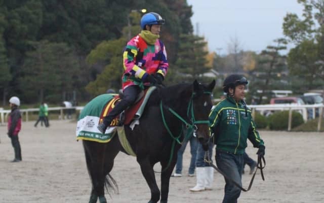 ロータスランドの写真を探していたら、2019年冬のものがありました。角居厩舎時代のもので、引っ張っているのはウオッカ…