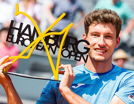男子テニスのハンブルグ・ヨーロピアン・オープン(ドイツ/ハンブルグ、レッドクレー、ATP500)は18日、シングルス決勝が行われ、第2シードのP・カレノ=ブスタ(スペイン)が第6シードのF・クライノビッチ(セルビア)を6-2, 6-4のストレートで下し、初となるATP500での優勝を飾り、今季ツアー2勝目をあげた。試合後には「信じられない気持ち」と喜びを語った。