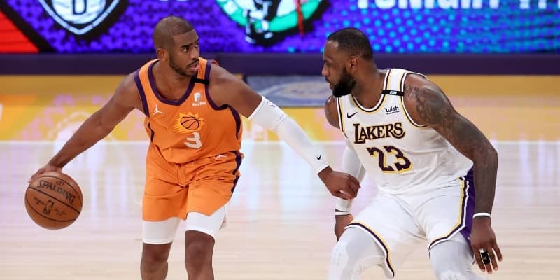 NBAファイナル2021のゲーム5では、ポールの応援に駆けつけたレブロン。現在、サンズは窮地に立たされているが、レブロンは親友の大逆転を信じているに違いない。
