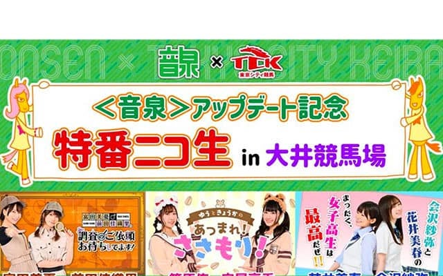 東京シティ競馬(TCK)は、インターネットラジオステーション<音泉>とのコラボイベントを実施することを発表した。