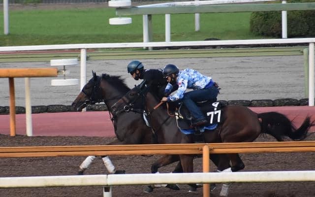 動きに力強さが出てきているサトノジーク(写真奥、7月14日撮影:井内利彰)