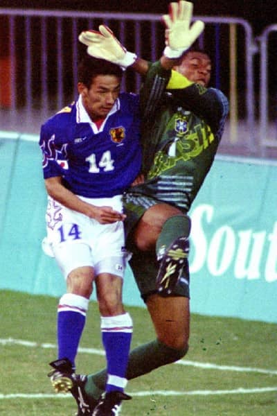 アトランタ五輪ブラジル戦でGKジーダと競り合う中田英寿