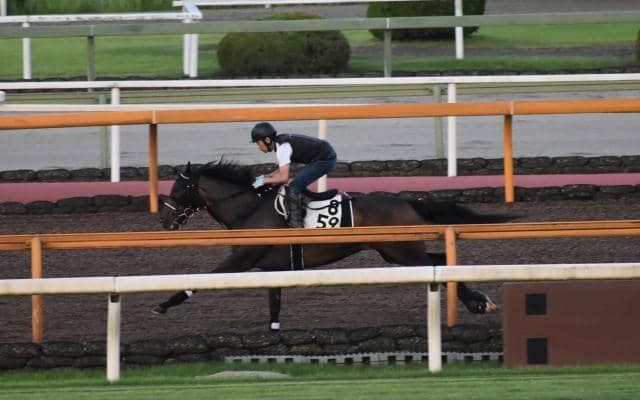 馬の少ない時間帯のCコースに入場しての追い切り。後ろから2歳馬が追いかけていたが、併せ馬というよりも、後ろが前を見ながら走っていただけといった感じ。ただ、後ろからなんとなくプレッシャーを感じる状態での追い切りという意味では、単走よりも気持ちが入るシチュエーションだったと思う。