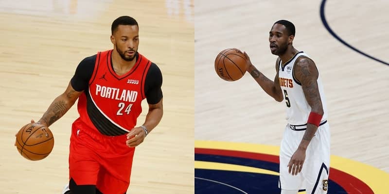 ブレイザーズのパウエル(左)とナゲッツのバートン(右)[写真]=Getty Images