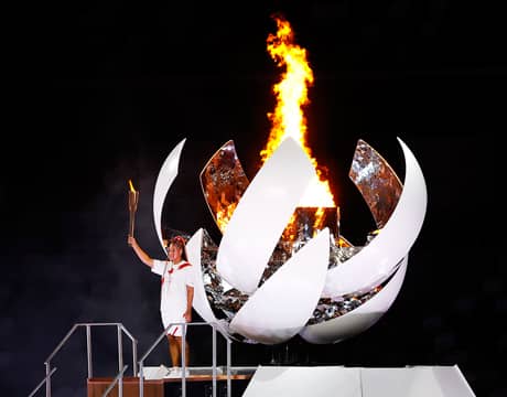 大坂、聖火台に点火「名誉」