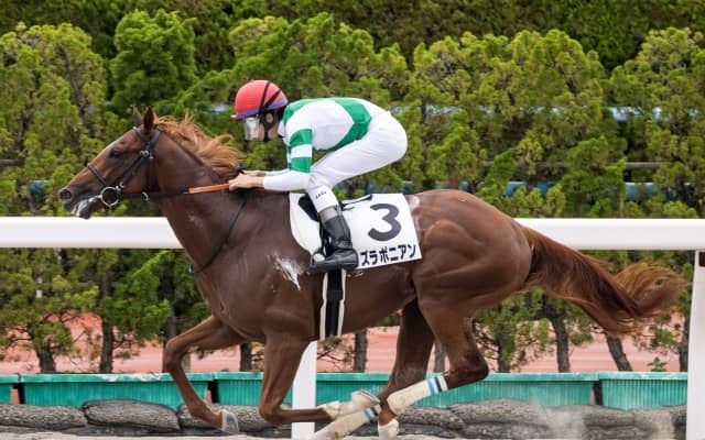 24日、函館競馬場5Rで行われた新馬戦(2歳・ダ1700m・12頭)は、2番手でレースを進めた横山和生騎手騎乗の3番人気カズラポニアン(牡2、美浦・宮田敬介厩舎)が、直線で先頭に立って後続を突き放し、2着の6番人気タイキマクスウェル(牡2、美浦・伊藤大士厩舎)に5馬身差をつけ優勝した。勝ちタイムは1分47秒3(良、2歳コースレコード)。