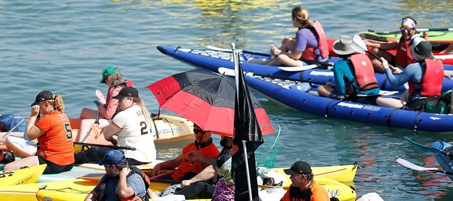右翼スタンドがサンフランシスコ湾に面しているジャイアンツの本拠地「オラクル・パーク」。名物のスプラッシュ・ヒットは、3回無死走者なしの場面で飛び出した。ジャイアンツのスティーブン・ダガーが放った打球が“着水”すると、カヌーに乗った2人の男性による争奪戦に。大人げなくケンカ腰で奪い合った結果、敗者は海に落下した。